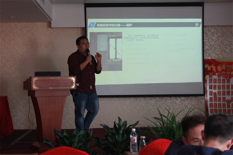 圣火家的領導在講解地暖產品。